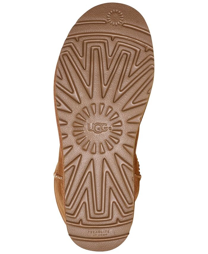 Сапоги без застежки с круглым носком. Подкладка из натуральной овчины для тепла и комфорта. Предварительно обработана для отталкивания влаги и пятен; детали оверлочной строчки на швах. Окрашенный и раскроенный мех овцы или ягненка. Происхождение меха: Австралия, Ирландия, Великобритания или США; происхождение готового продукта: Вьетнам или Китай. Подошва Treadlite от UGG™ для легкой подошвы для увеличения амортизации, долговечности и сцепления. Верх, подкладка и стелька из овчины толщиной 17 мм. Этот продукт был изготовлен на фабрике, которая поддерживает женщин в нашей цепочке поставок с помощью HERproject, совместной инициативы, которая создает партнерские отношения с такими брендами, как наш, для расширения возможностей и обучения женщин на рабочем месте. Верх из замши; подкладка из настоящей овчины; Резиновая подошва Treadlite от UGG™, импортная.