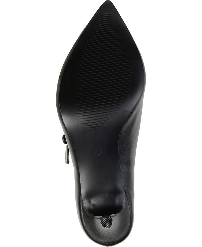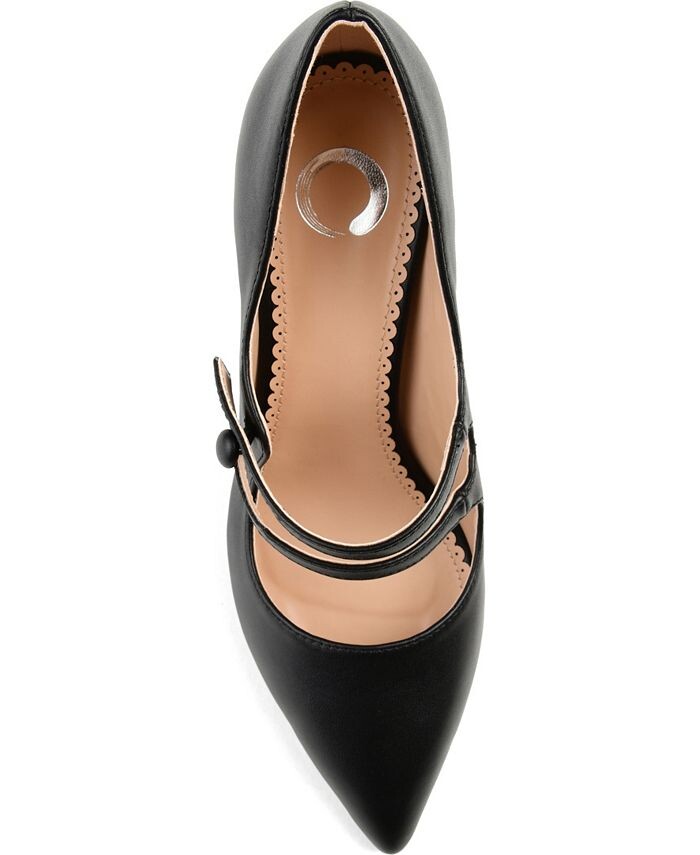 Каблук-лодочка высотой 3 дюйма Мягкая стелька Ремешок на союзке с пуговицами Острый нос Верх из искусственной кожи Искусственная кожа — полиуретан Spot Clean Imported