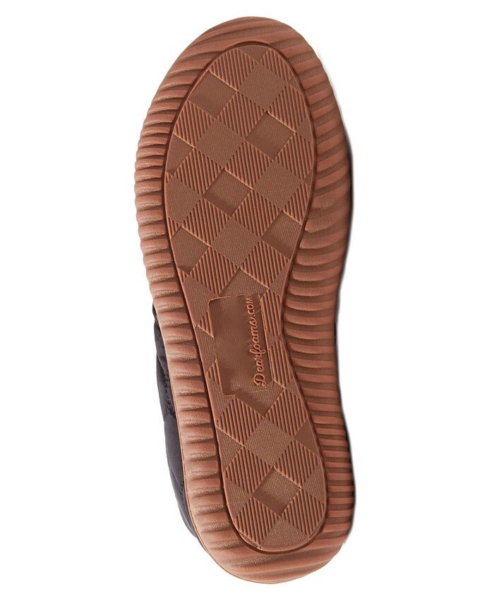 Верх из тисненого нейлона с акцентной строчкой. Уютная плюшевая подкладка и стелька. Не потеют: эти тапочки дышащие и регулируют температуру. Технология адаптации Dearfoams необходима для того, чтобы ноги оставались сухими и не потели в течение всего дня. Стелька из пены с эффектом памяти обеспечивает дополнительный комфорт. Подошва для использования вне помещений и в помещении, на открытом воздухе. Можно стирать в машине для длительного сохранения свежести. Ограниченная гарантия на 1 год.. Подошва — термопластичная резина, верх, союзка — 100 % нейлон, подкладка, стелька — искусственная короткая шерсть, 100 % полиэстер, импортный, можно стирать в машине.