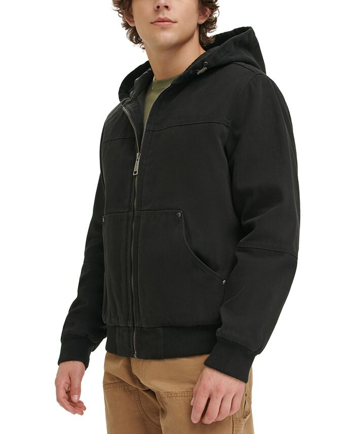 Levi's Сочетает худи и бомбер, создавая уникальный стиль рабочей одежды. Верх из хлопкового полотна имеет стеганую подкладку для дополнительной изоляции.