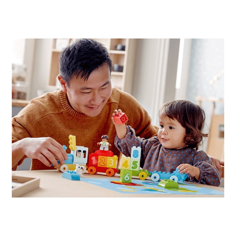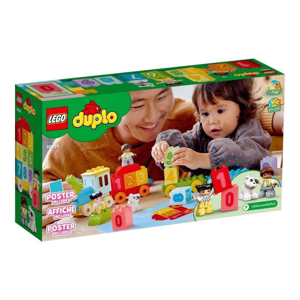 Поймайте новый красочный поезд LEGO® DUPLO® My First Number Train - Learn To Count (10954). 10 кубиков с цифрами, которые малыши могут загружать, разгружать, складывать и сортировать, а также фигурки девочки, мальчика и собаки DUPLO - веселье в игре и обучении никогда не закончится.