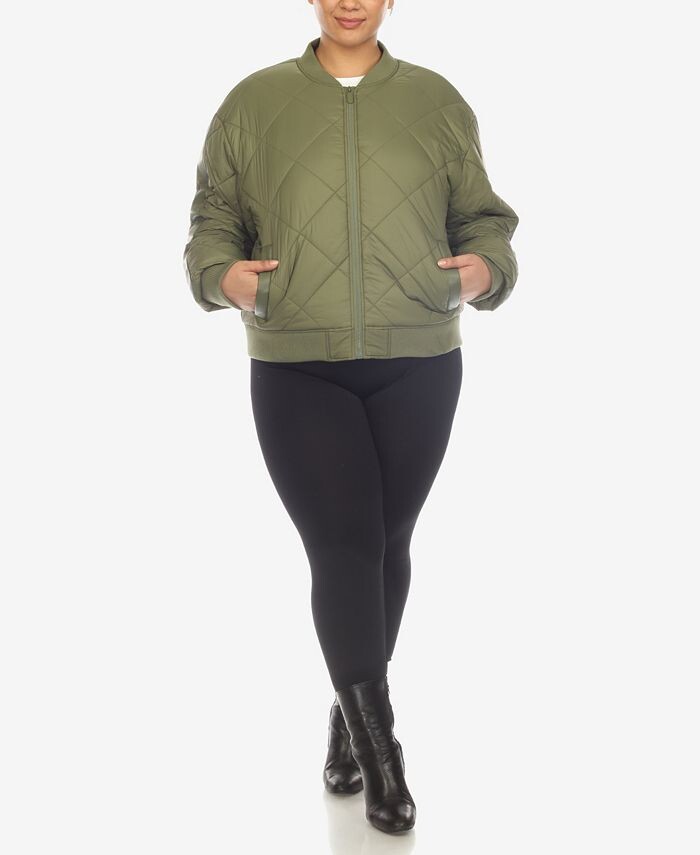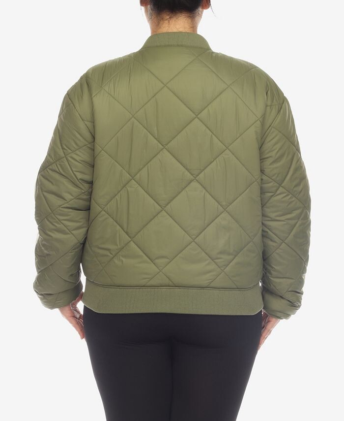 Стеганый бомбер больших размеров с бриллиантами White Mark, зеленый