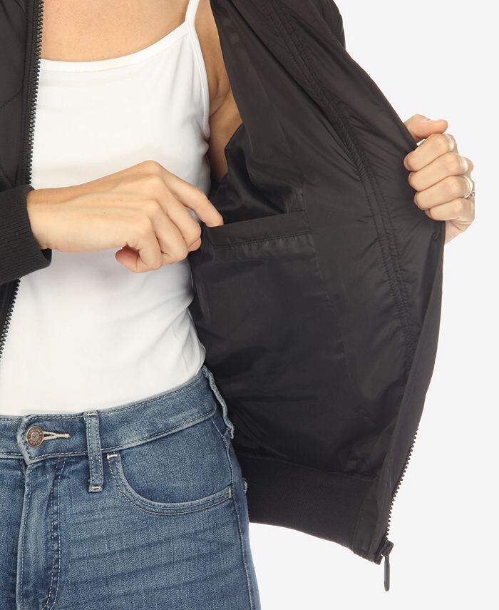 Женский легкий стеганый бомбер с ромбовидной стежкой White Mark, черный