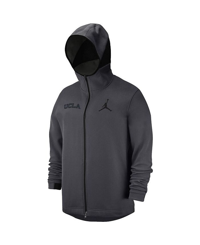 Мужская брендовая антрацитовая куртка с капюшоном UCLA Bruins в тон Showtime на молнии во всю длину Jordan, серебро