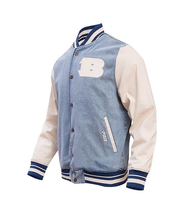 Продемонстрируйте свою гордость за команду Cincinnati Bengals за винтажный стиль с помощью этой университетской куртки Varsity Blues от Pro Standard. Его дизайн с застежкой включает логотип и название Cincinnati Bengals, вышитые на джинсовой ткани, а также контрастные льняные рукава. Традиционная полосатая отделка прекрасно дополняет командную графику и смешанные материалы.