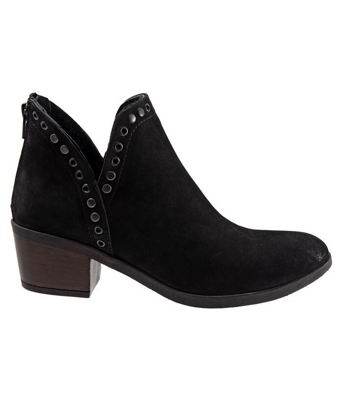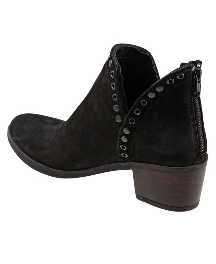 Cora — ботильоны с глубокими боковыми вырезами, украшенные металлическими люверсами и заклепками. Застежка-молния сзади позволяет легко надевать/снимать.