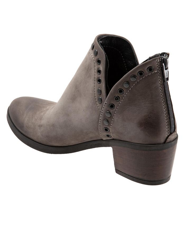 Cora — ботильоны с глубокими боковыми вырезами, украшенные металлическими люверсами и заклепками. Застежка-молния сзади позволяет легко надевать/снимать.