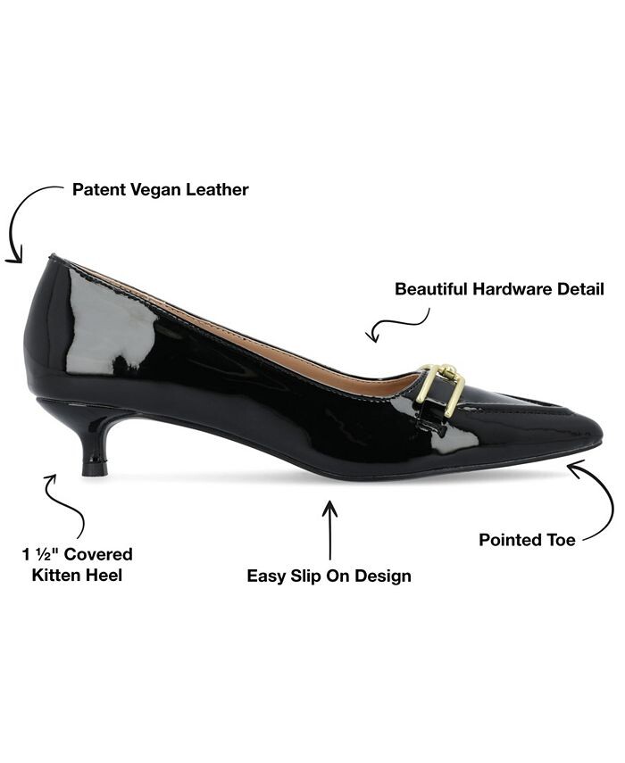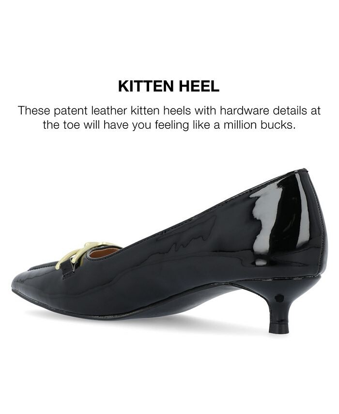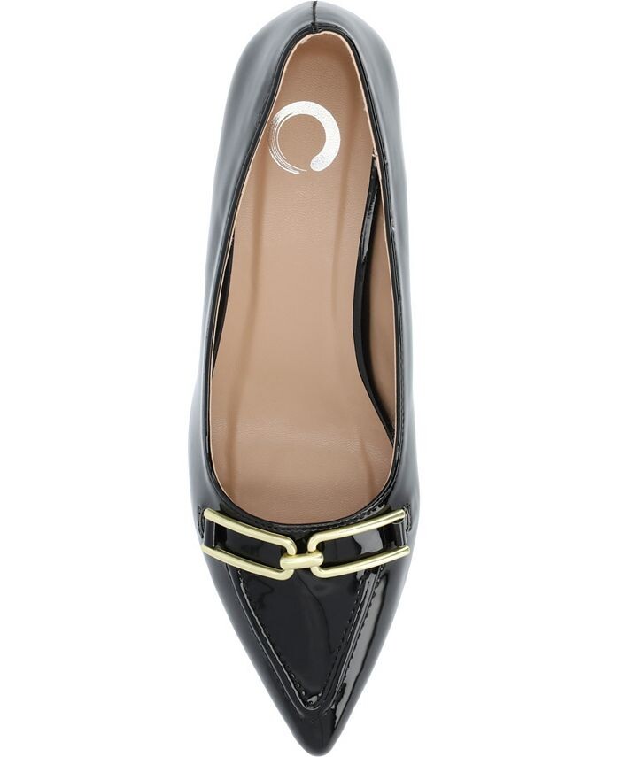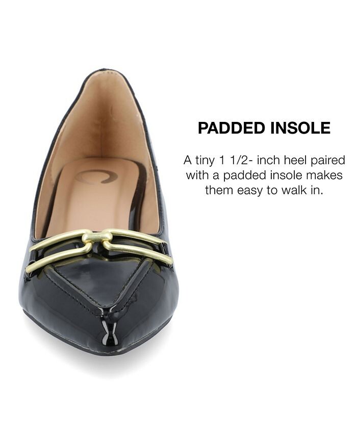 Наши туфли на каблуке Rumi из коллекции Journee так же легки и шикарны благодаря своему силуэту без шнуровки, роскошной лакированной искусственной коже и фурнитуре. В качестве бонуса их мягкая стелька позволит вам ходить с комфортом.
