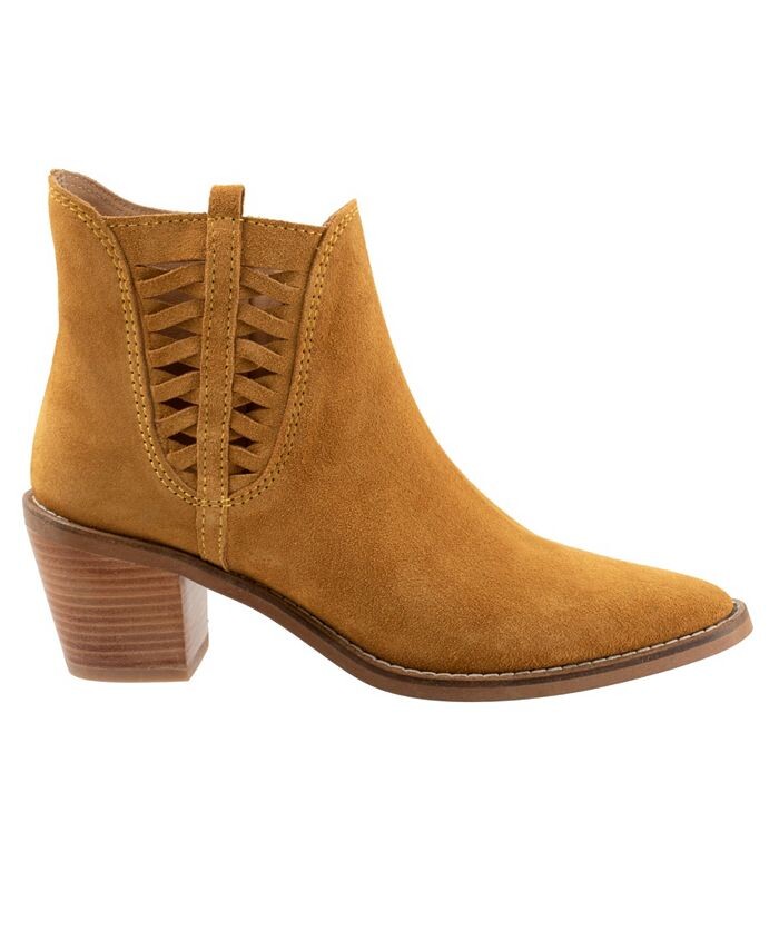 Veronika — это замшевые ботинки с острым носком, наборным каблуком и детальным вырезом сбоку.