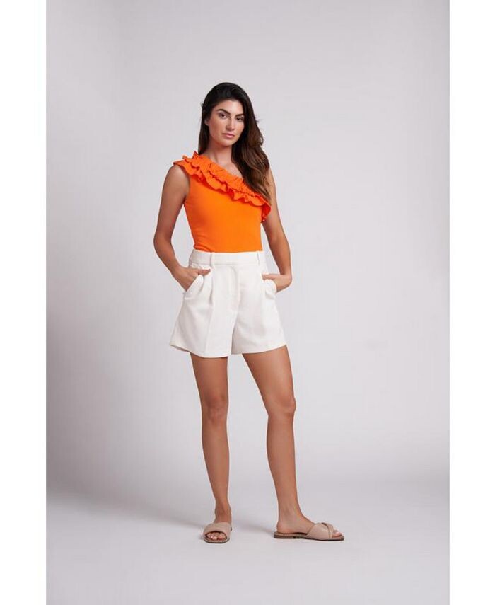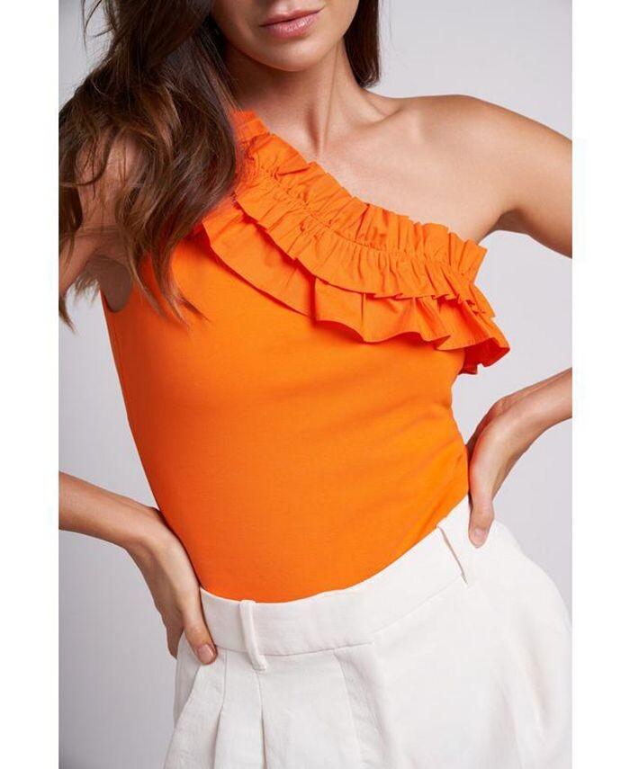 Боди Vivid Orange Robin от Caldwell Collection станет изюминкой любого наряда благодаря своему воланному дизайну на одно плечо с оборками. Этот топ идеально подходит для перед игрой, игровым днем, выпускным, фотографиями пожилых людей и не только.