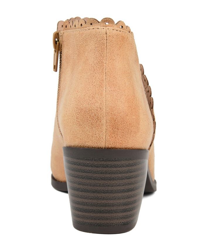 Тесса — идеальный потертый образ в этом сезоне. Миндалевидный носок, толстый каблук и зубчатые края в довершение всего. Дизайн с открытой лодыжкой придает женственным ботильонам красивый вид. Сочетайте с любимыми скинни или платьем.