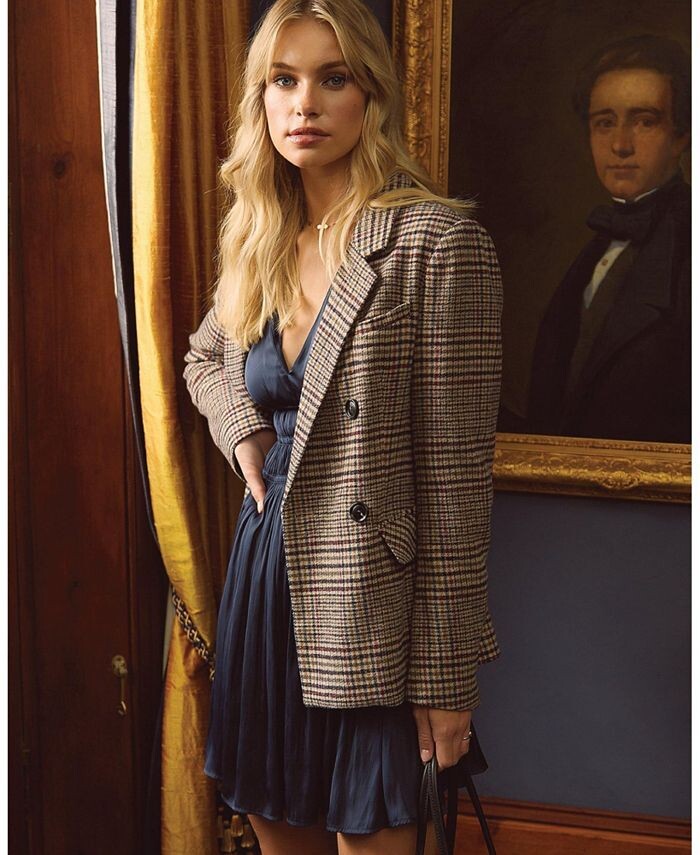 Блейзер в клетку из смеси шерсти Пикадилли, воплощающий традиционный образ, отличается элегантным двубортным кроем и узором в несколько клеток, вдохновленным мужской одеждой. Обязательно раскройте его, чтобы продемонстрировать забавную подкладку с принтом. nbsp;