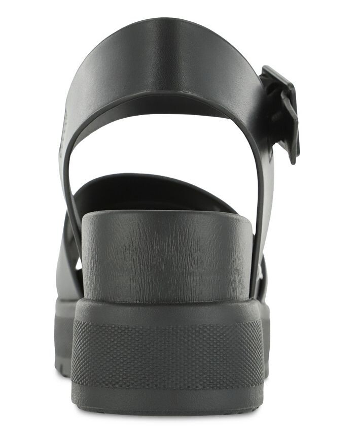 Каблук на танкетке 2,3 дюйма, высота платформы — 2,3 дюйма. Ширина обуви — средняя. Застежка-пряжка. Мягкая стелька. Верх из полированного полиуретана наппа, подкладка из искусственной кожи, подошва из термопластической резины. Круглый носок. Полированный полиуретан наппа, импортная очистка.