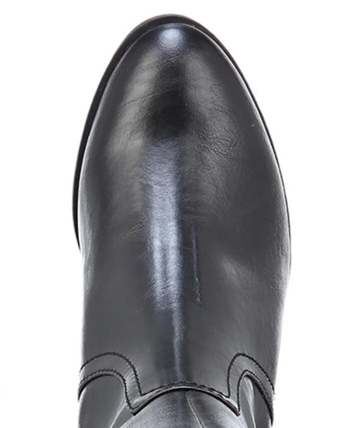 Каблук 1,25 дюйма. Голенище: высота 14 дюймов, окружность 15 дюймов. Высота и окружность голенища варьируются в зависимости от размера. Застежка-молния на внутренней стороне лодыжки. Миндалевидные ботинки для верховой езды с закрытым носком, ремешком и пряжкой. Верх из искусственной кожи, искусственная подошва. Импортный.