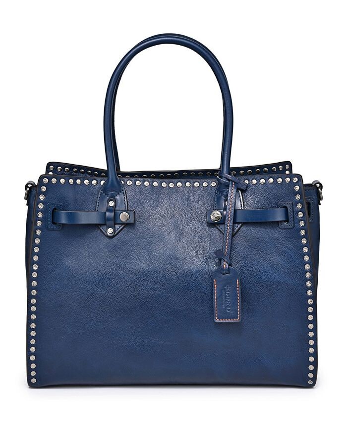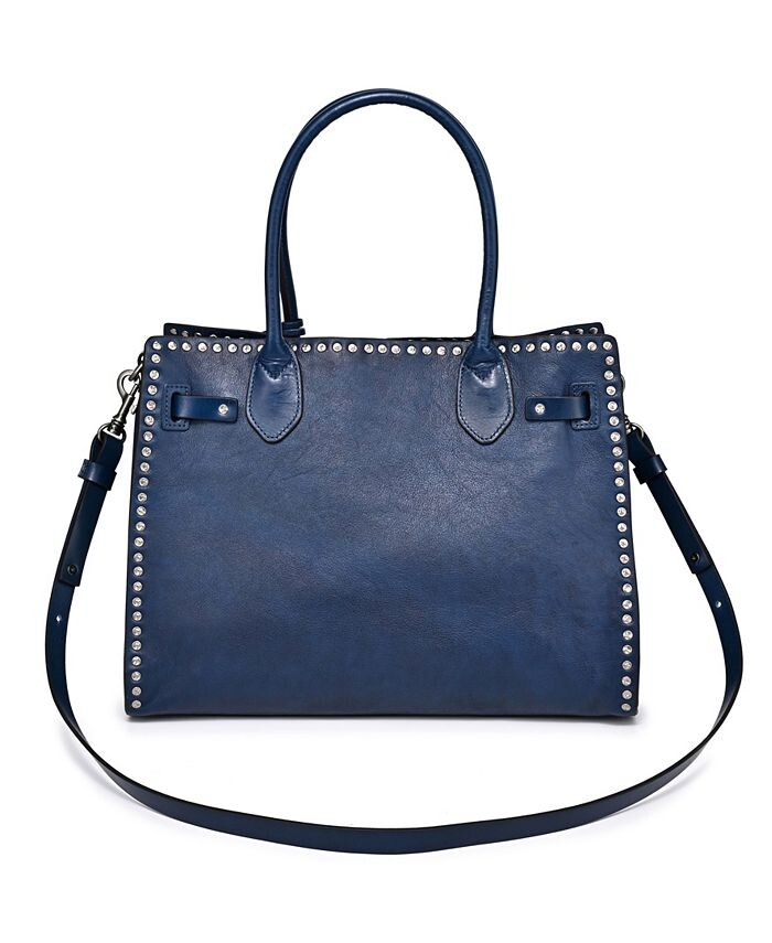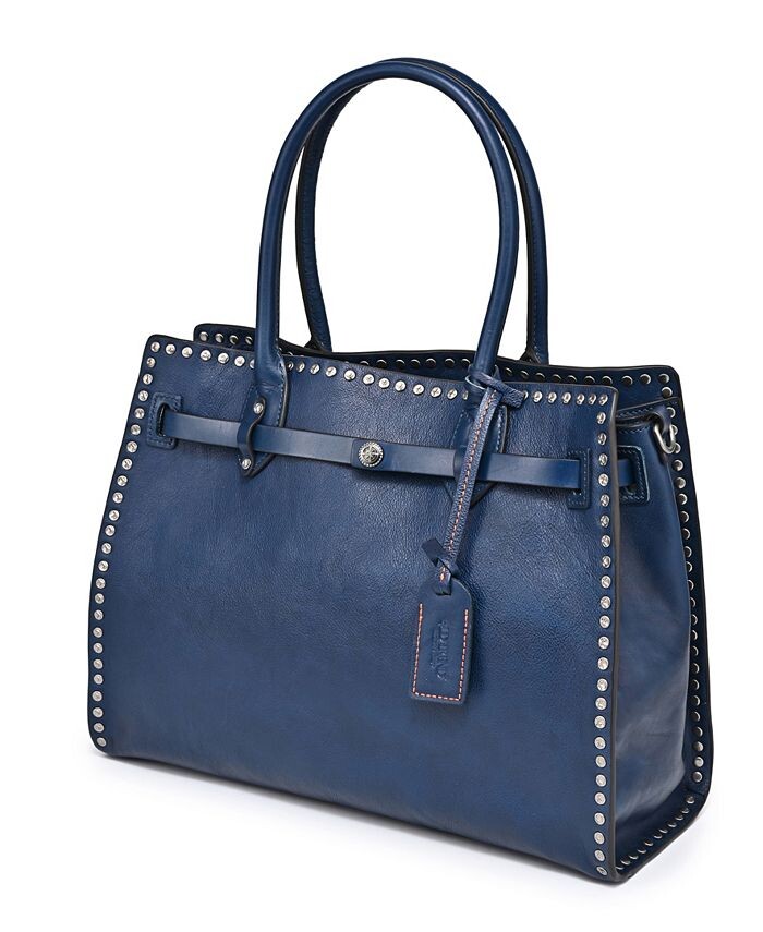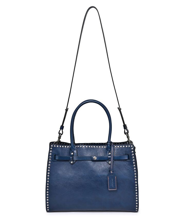 Возьмите с собой все самое необходимое в свободном стиле с нашей сумкой-сэтчел West Land, выполненной из фактурной натуральной кожи и блестящей металлической отделкой заклепками.