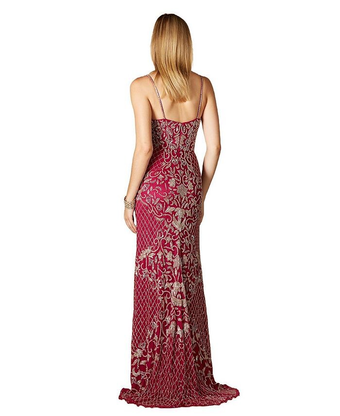 Блестящее решетчатое платье из бисера с изящными бретельками-спагетти, расшитыми бисером, и эффектным разрезом. Наденьте это на свой день рождения и сияйте в центре внимания.