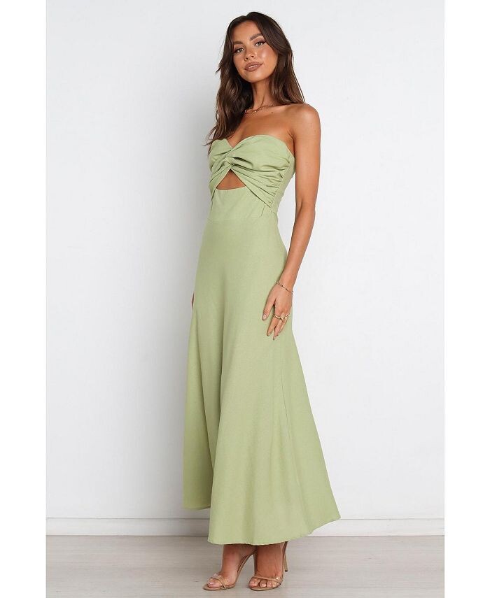 Наше платье макси-длины Rosetta идеально подойдет для вашей следующей вечеринки. Вырез в форме сердца без бретелек и облегающий крой позволят вам выглядеть потрясающе. Также имеется закрученный узел на груди и вырез под грудью для придания дополнительного стиля.