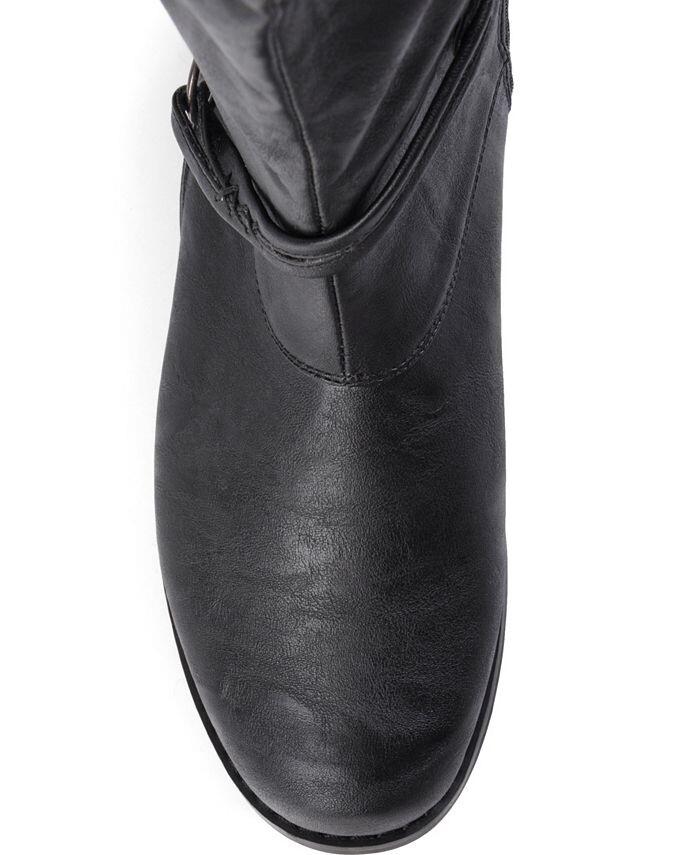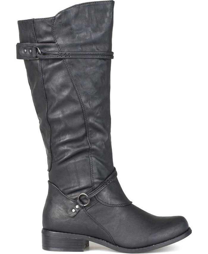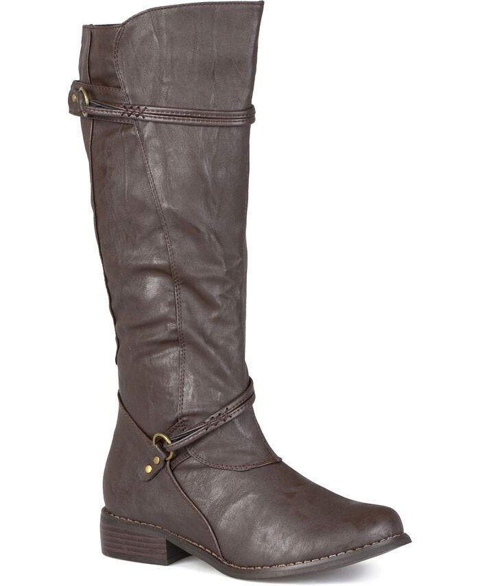 Выразите свой стиль в этом сезоне в универсальных ботинках для верховой езды от Journee Collection. Эти ботинки имеют верх из мягкой искусственной кожи (полиуретана), доходящий до уровня ниже колен, с голенище, поднимающимся выше спереди. Осенние ботинки с ремешками, подчеркивающими лодыжки.