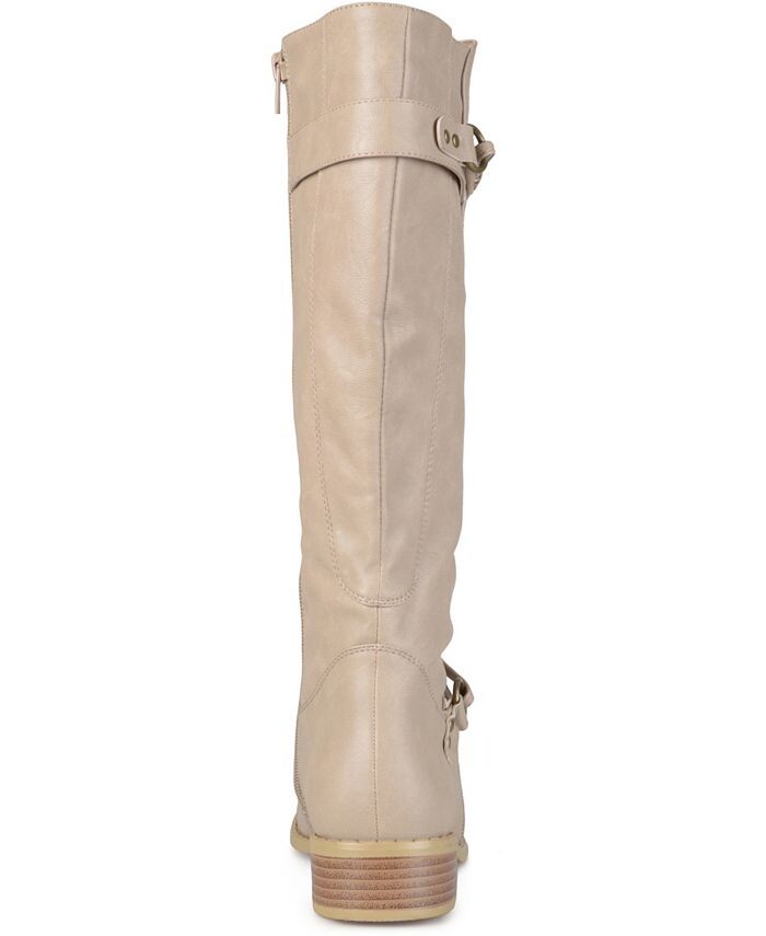 Выразите свой стиль в этом сезоне в универсальных сапогах для верховой езды Wide Calf от Journee Collection. Эти ботинки имеют верх из мягкой искусственной кожи (полиуретана), доходящий до уровня ниже колен, с голенище, поднимающимся выше спереди. Осенние ботинки с ремешками, подчеркивающими лодыжки.