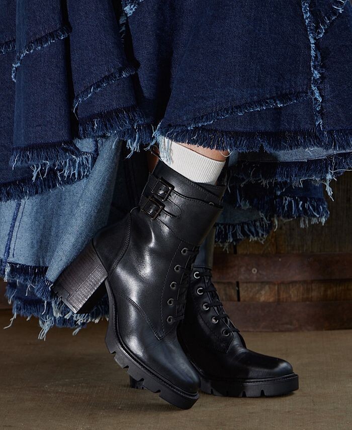 Эти кожаные ботильоны с круглым носком, высоким каблуком на платформе, подошвой с выступами, стильным верхом на шнуровке и ремешком с двойной пряжкой придадут неповторимую привлекательность вашему повседневному образу. Поднимите свой стиль обуви!