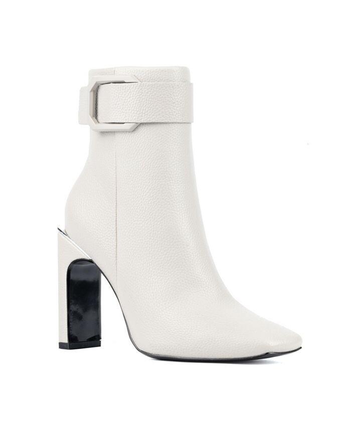 Эти потрясающие туфли на высоком каблуке, выполненные из шагреневой кожи с рисунком, имеют стильный квадратный носок и гладкий блочный каблук с металлической акцентировкой. Согрейтесь в прохладную погоду с помощью териленовой подкладки и застегните их на молнию.