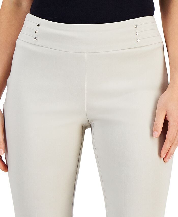 Прибл. Рост модели 5 футов 4 дюйма, на ней размер petite small. Прибл. внутренний шов: 19 дюймов. Рост: прибл. 9-1/10 дюймов; облегающая посадка Разработан для соответствия фигуре ростом 5 футов 4 дюйма и под рамой. Стиль натягивания. Металлические заклепки на талии. Создано для Macy's. Этот продукт был изготовлен на фабрике, где программы RISE способствуют расширению прав и возможностей женщин и гендерному равенству. Вискоза, нейлон, спандекс Машинная стирка Импортный