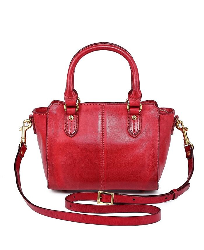 Ширина 8,75 дюйма, высота 7,5 дюйма, глубина 4,75 дюйма. Высота ремешка: 24. Высота ручки: 5. Основная застежка-молния со съемным и регулируемым плечевым ремнем. Внешние особенности включают карманы с клапанами, золотистую фурнитуру и ножки для сумки. Внутренние особенности включают карман на молнии, 2& Накладные карманы и жаккардовая хлопковая подкладка 100 % натуральная кожа - 100 % фурнитура без никеля - 100 % красители на растительной основе Импортные точечная чистка