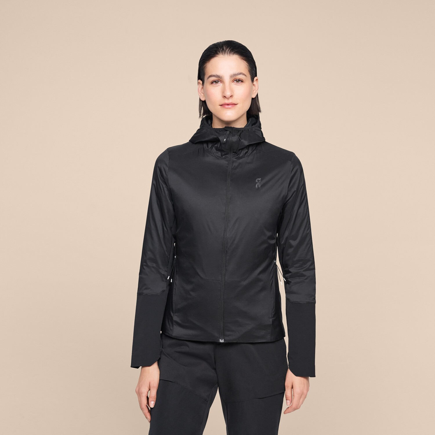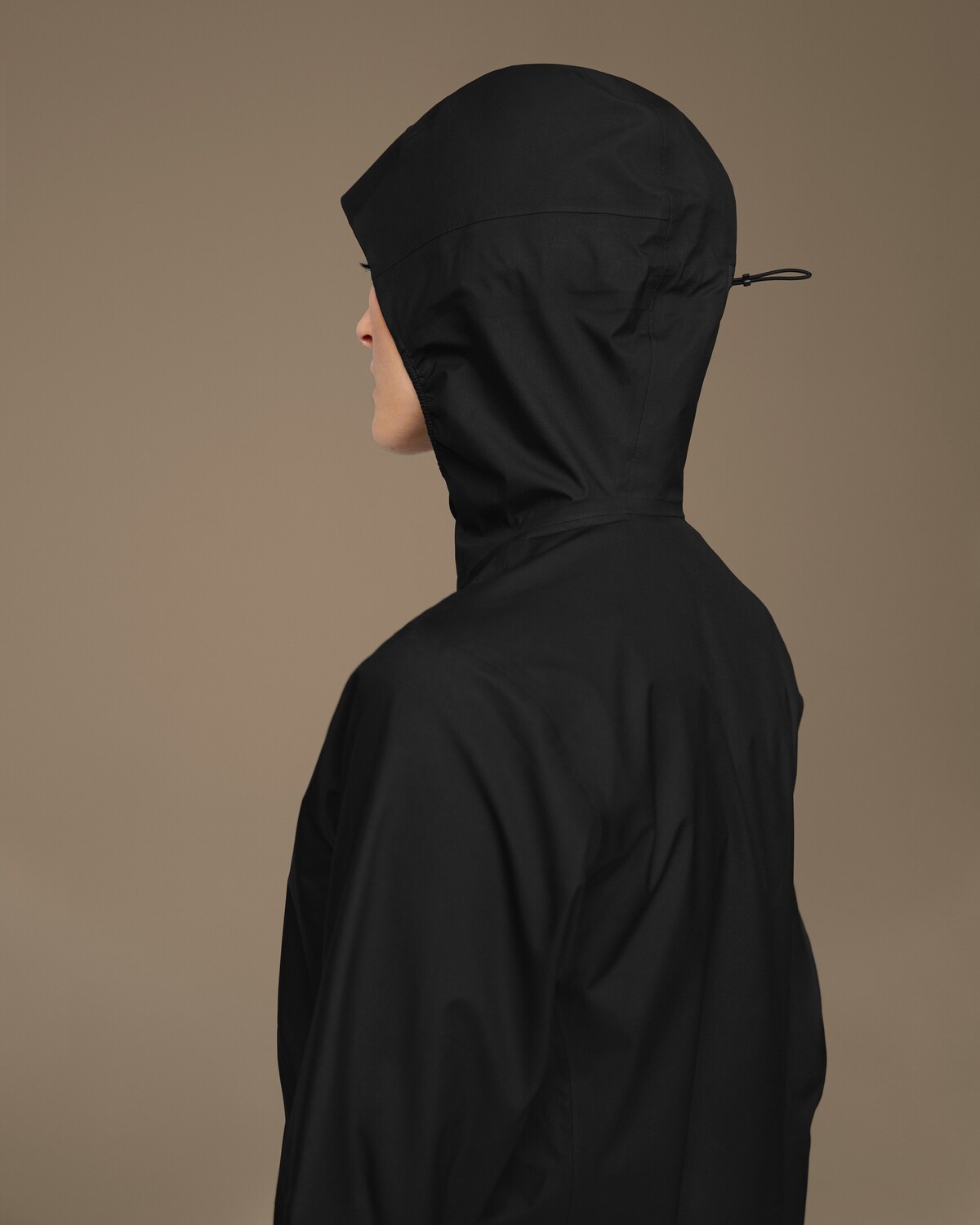 Используйте эластичную завязку, чтобы плотно затянуть капюшон