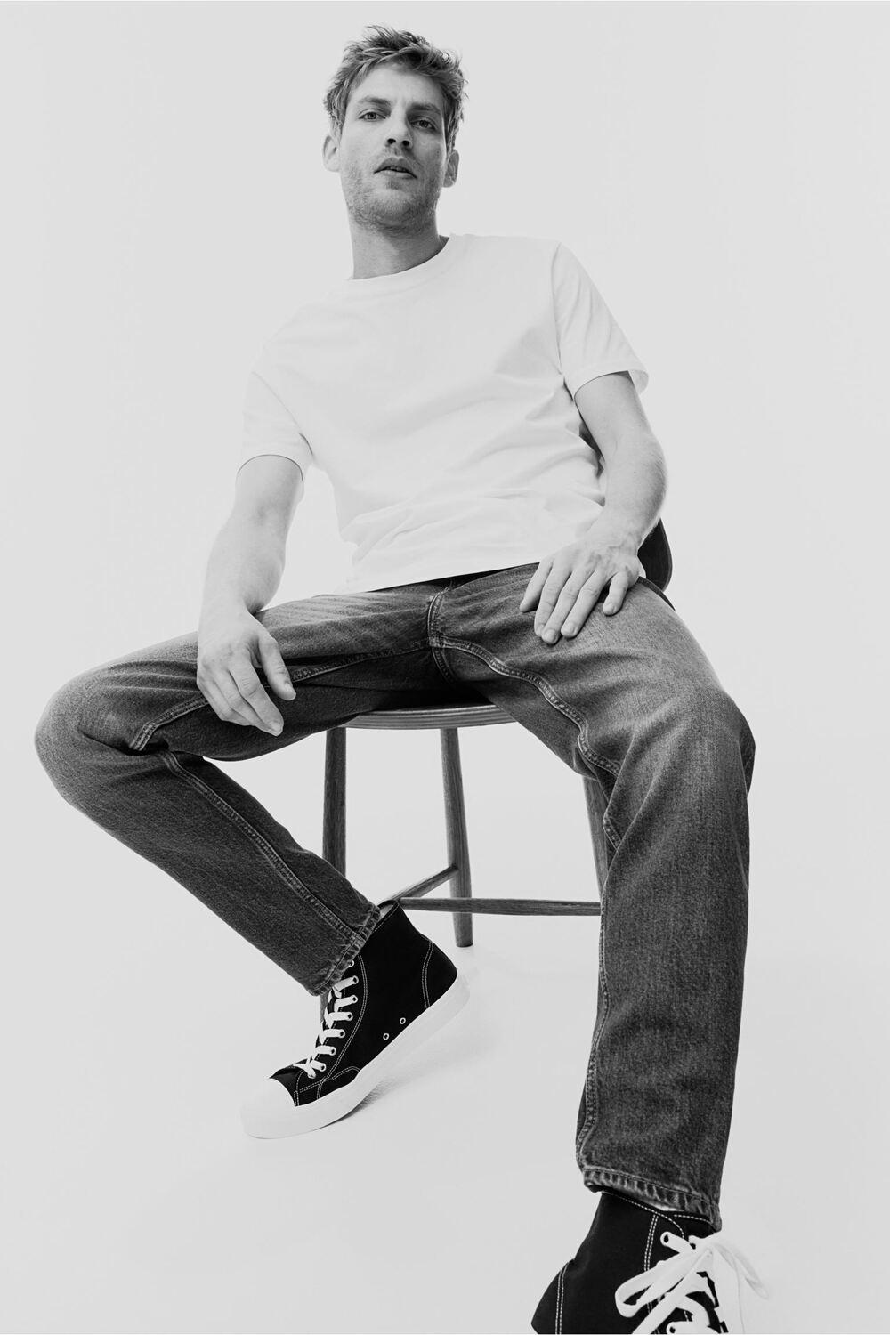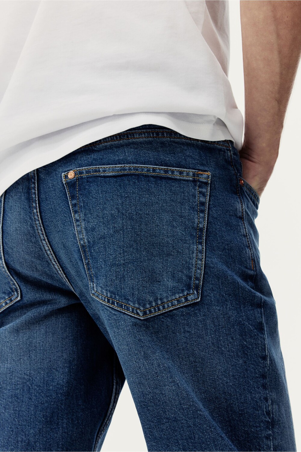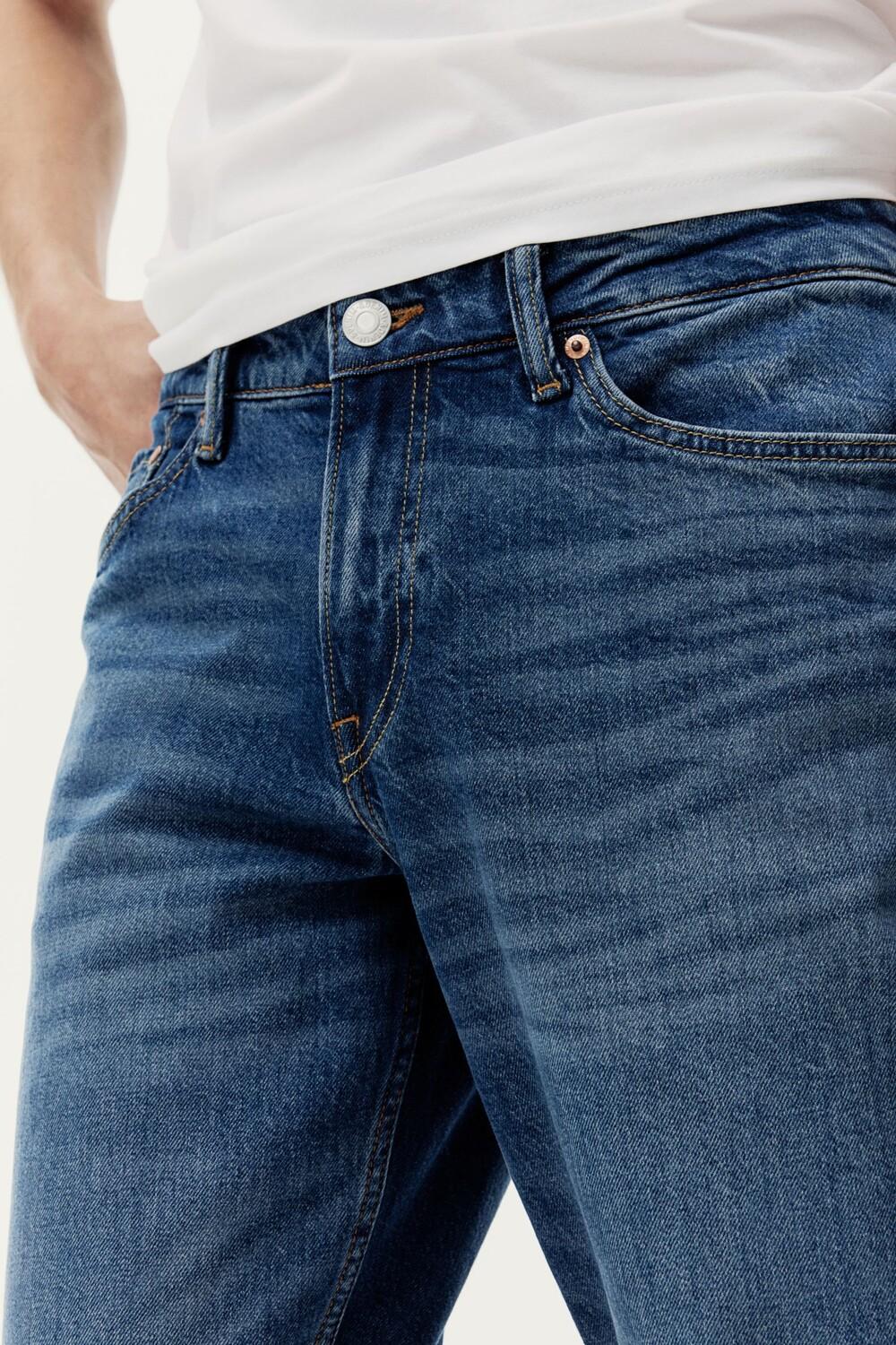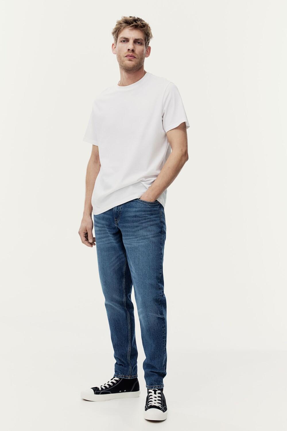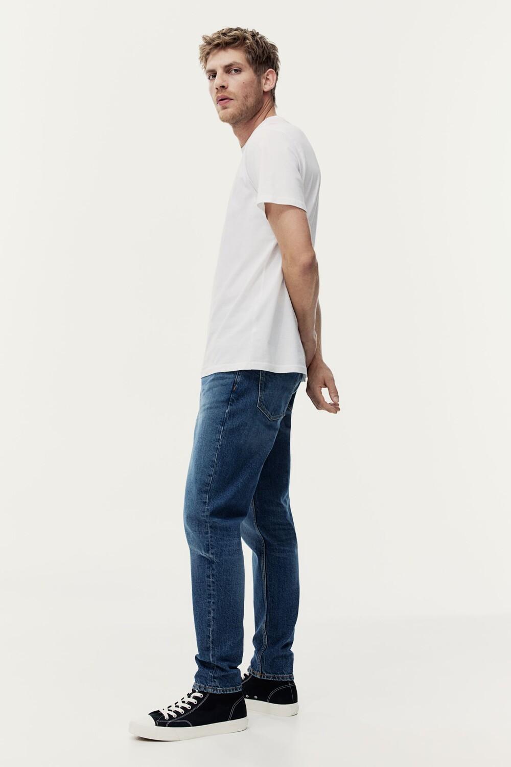 Джинсы с пятью карманами из хлопкового денима с легкой эластичностью для комфорта. Классический крой, с зауженными штанинами, ширинка на молнии.