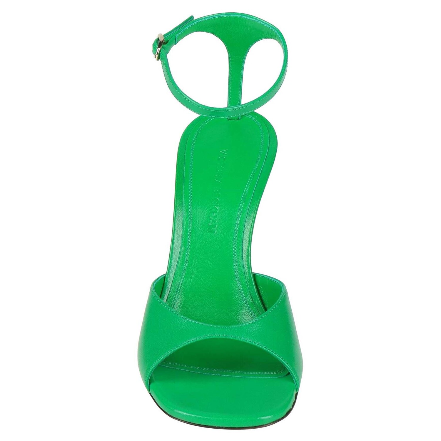 Женские зеленые босоножки на каблуке Victoria Beckham из мягкой кожи.