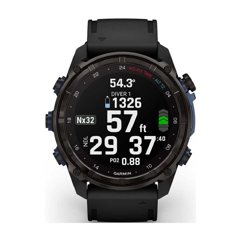Garmin Descent MK3i - это современный дайверский компьютер в формате часов, который включает в себя стильный титановый корпус и большой цветной дисплей 1.4” с отличным качеством изображения даже при солнечном свете. Ныряйте на глубину новых возможностей. Используйте несколько режимов погружения для однокомпонентных и многокомпонентных газовых смесей (включая нитрокс и тримикс), режим «gauge», фридайвинг, фридайвинг-охота и режим регенеративного дыхательного аппарата с замкнутой системой. Descent MK3i могут быть сопряжены с передатчиком Descent T2 для интегрированного мониторинга давления до 5 баллонов с помощью сети данных сонара SubWave. Добавляйте дополнительные экраны для каждого режима погружения, выбирая нужную вам информацию. Отслеживайте точки начала и окончания погружения с помощью улучшенных возможностей подключения к спутникам.