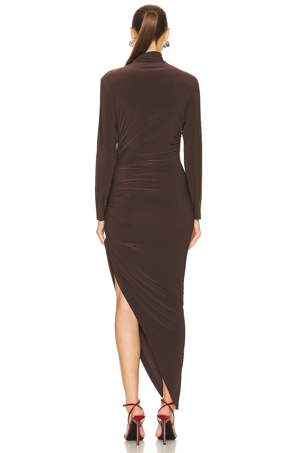 Платье Norma Kamali Long Sleeve Turtleneck Side Drape Gown, цвет Chocolate