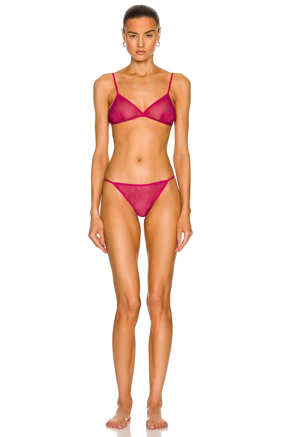 Бюстгальтер Saint Laurent All Over Logo Triangle, цвет Fuchsia & Rouge