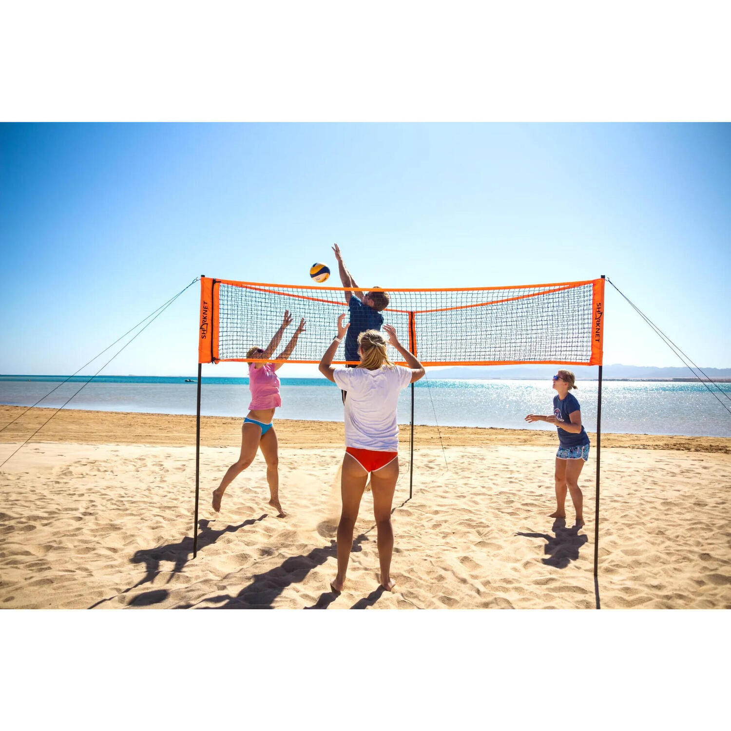 Идея SHARKNET, первой в мире треугольной волейбольной сетки, возникла из популярной детской игры «Свинка посередине», в которую играют во всем мире. Адаптированная для игры в волейбол, SHARKNET предлагает самую инновационную волейбольную сетку и игру на открытом воздухе на рынке.