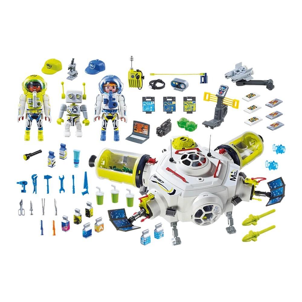 Состав комплекта: 1 космонавт, 1 космонавт, 1 робот; Аксессуары: 1 станция Марс, 1 двойное оружие, 2 этажа, 3 доски, 1 фитнес-устройство, 1 космонавт сброшен, 1 элемент управления с соединительным кабелем, 1 радиочасы, 1 ноутбук, 1 микроскоп, 1 видеомагнитофон, 1 фонарик, 1 набор инструментов (6 штук) 1 комплект медицинских инструментов (4 штуки) 2 зубные щетки, 2 камня, 1 трубка, 3 чашки для питья, 1 голова салата, 5 пакетиков сока, 4 мешка для еды, 6 баров, 2 шлема космонавта с козырьком, 2 пары крепких рук космонавта, 2 заглавных буквы, 1 фара