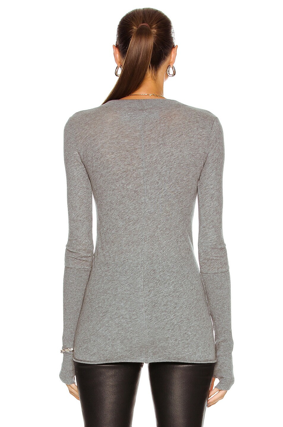 • Приталенные рукава в рубчик с отверстием для большого пальца.