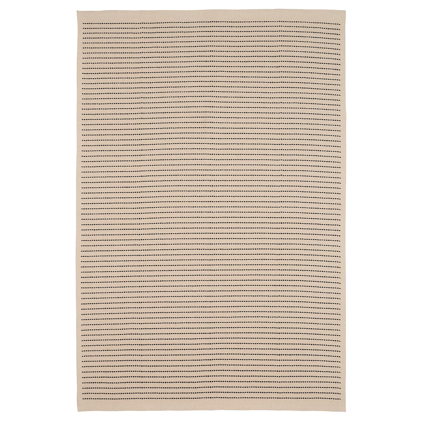 Безворсовый ковер легко почистить пылесосом. Идеальное решение для гостиной или столовой. Можно использовать на любом типе напольных покрытий, даже на полах с подогревом. Этот ковер натурального цвета с черными полосками всегда выглядит актуально и прекрасно сочетается с разной мебелью и текстилем. Подойдет как для гостиной, так и для столовой.