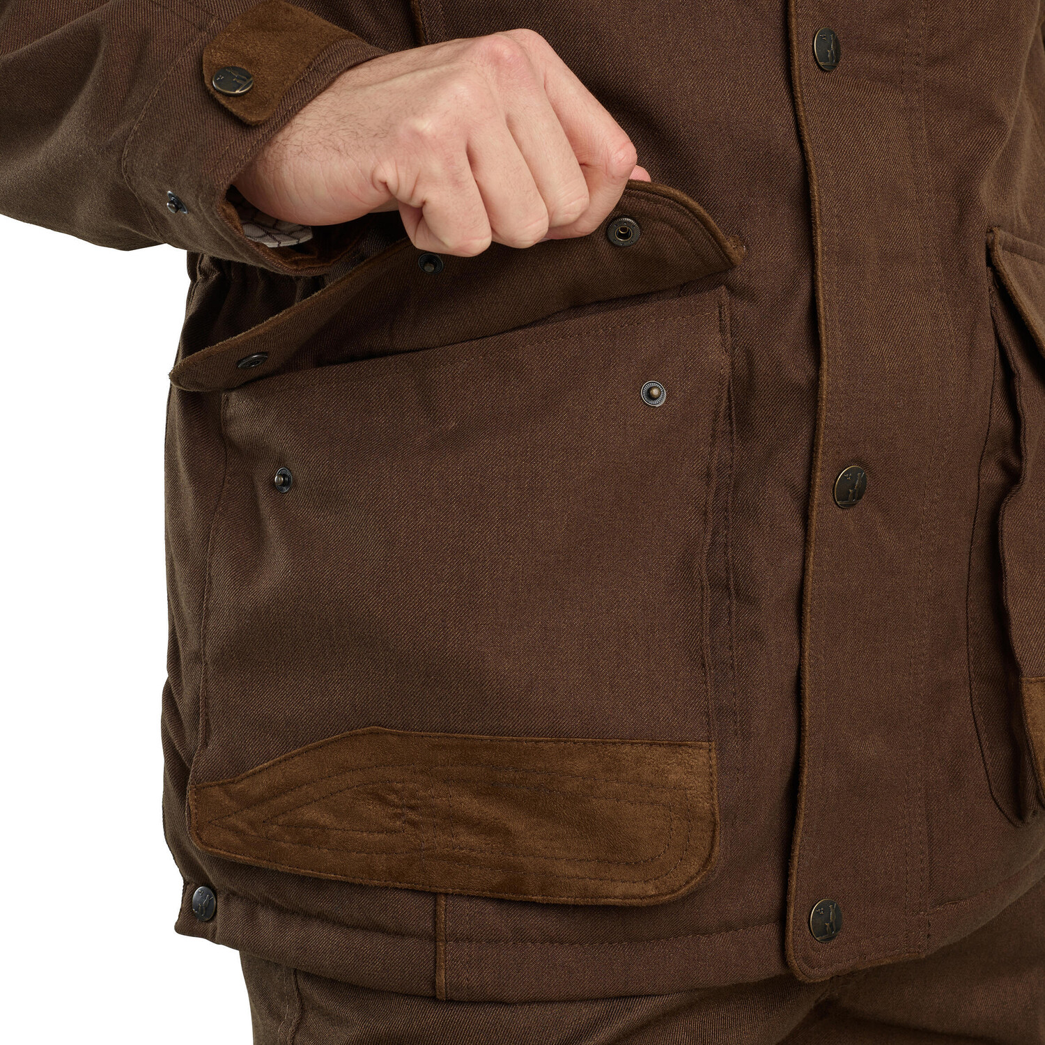 Для стрелков на охоте в холодную погоду. Также подходит для других видов охоты. Теплая непромокаемая куртка с карманом для дичи для защиты от дождя во время охоты.