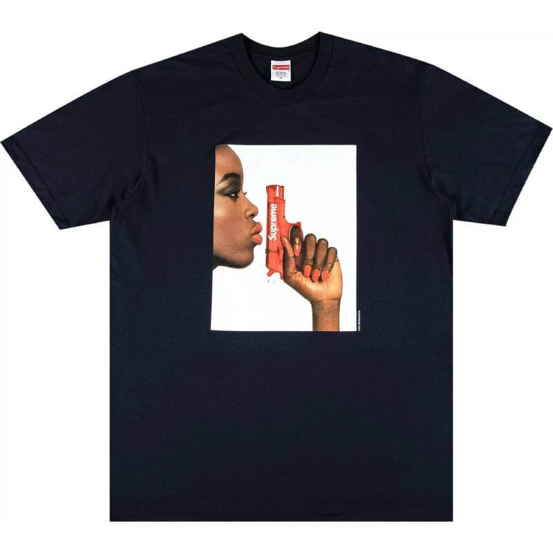 Футболка из хлопка с принтом с водяным пистолетом от Supreme. Стандартный крой, свободная посадка, круглый вырез, короткие рукава.