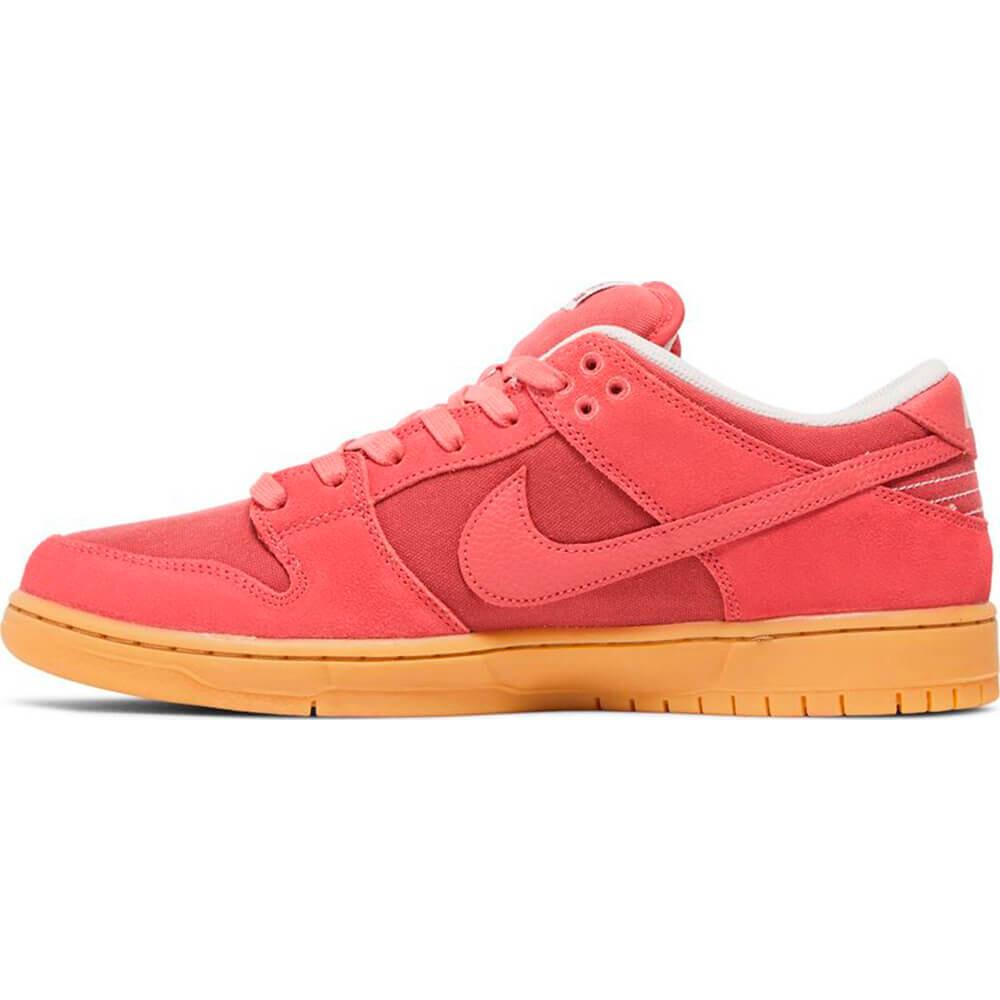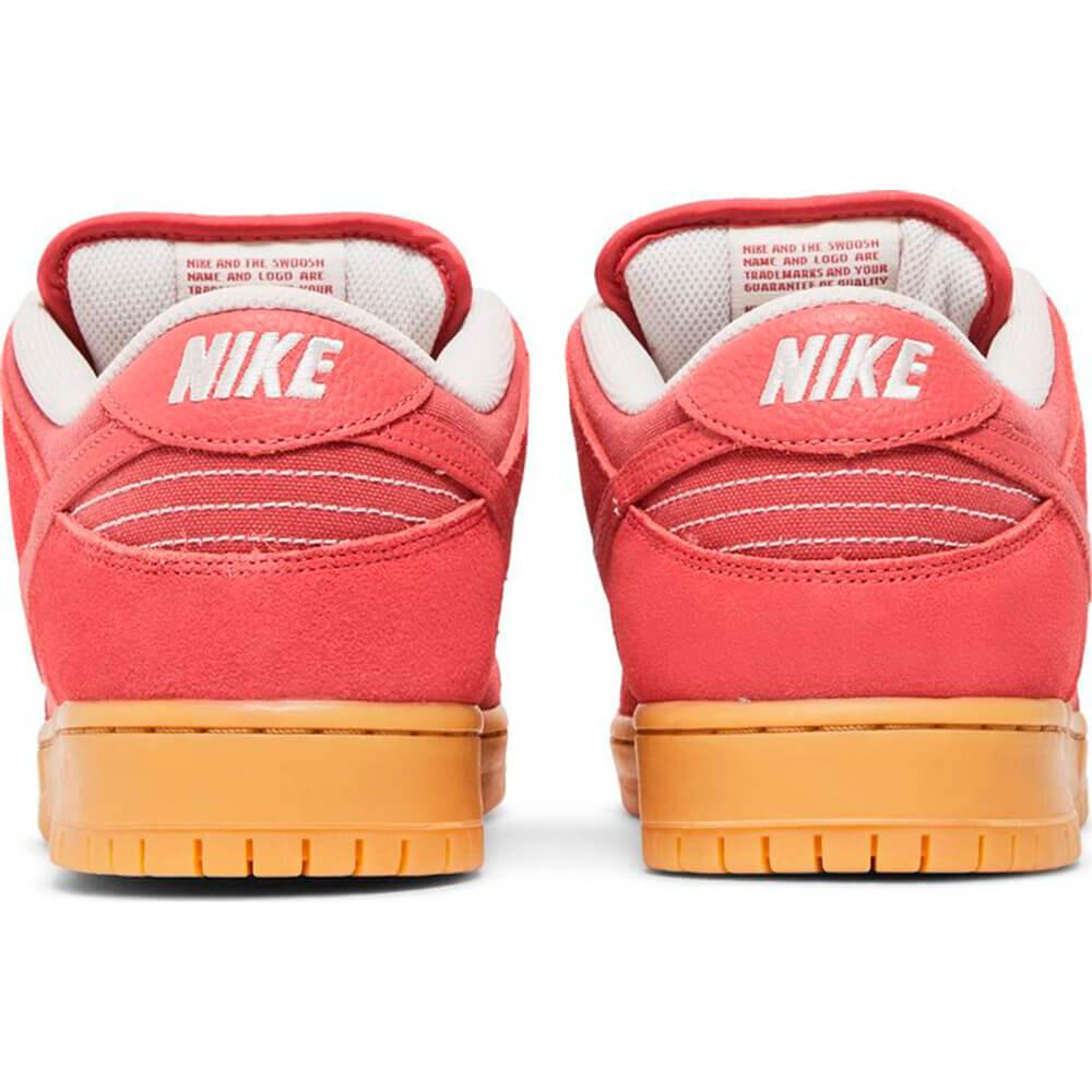 Верх кроссовок Nike Dunk Low SB "Adobe" выполнен в однотонном кирпично-красном цвете, подчеркнутом вощеной холщовой основой с замшевыми накладками и отделкой из кожи с камешками. Язычок с подкладкой украшен тканым значком Nike SB, а графический принт на носке изображает игривое руководство для любителей приключений на скейтбордах. Низкий верх установлен на прочной резиновой подошве gum с прошитыми боковинами и круговым рисунком сцепления под ногами.