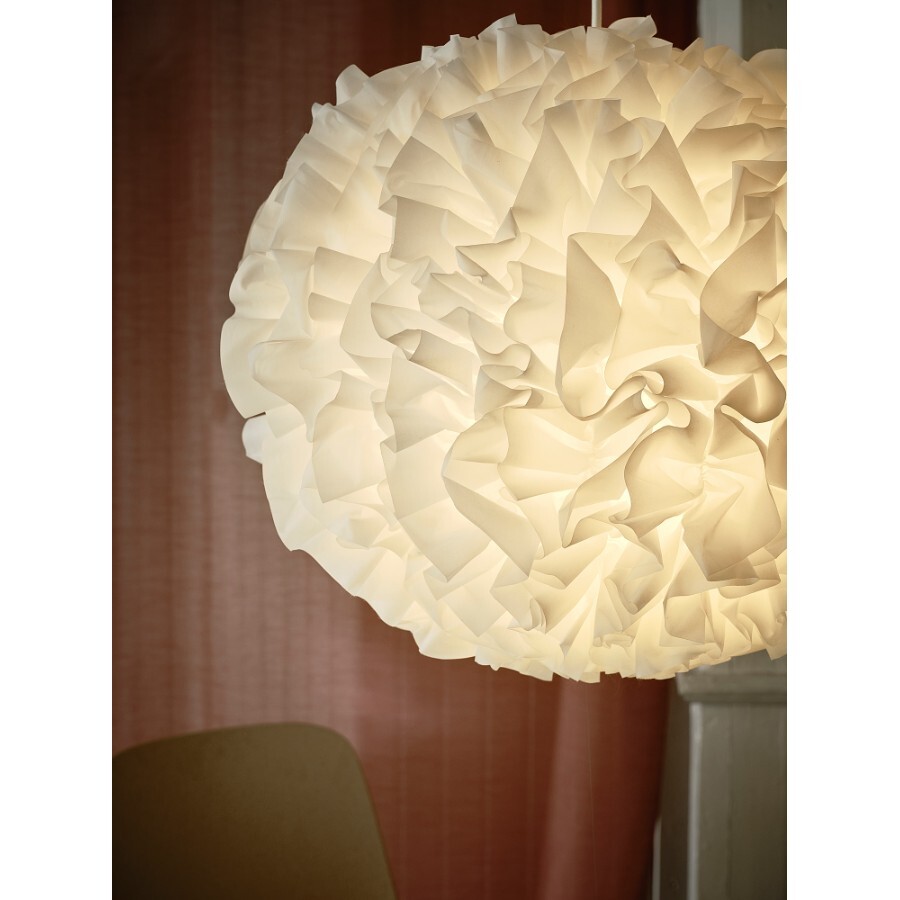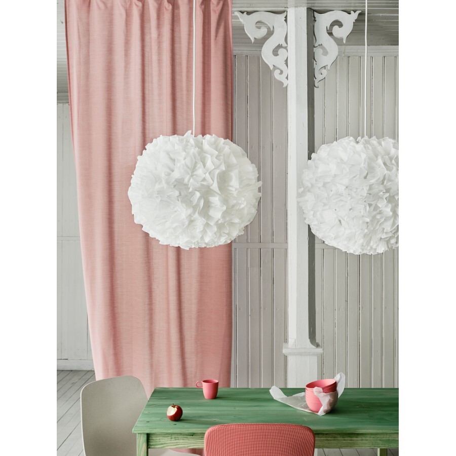 Изготовленный из переработанного полиэстера, этот сшитый потолочный абажур похож на мягкое белое облако, сияние которого создает уютную атмосферу. Идеально подходит для спальни или над журнальным столиком.