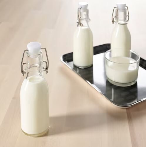Эта маленькая бутылка с крышкой идеально подходит для подачи молока на завтрак, или вы можете наполнить ее оливковым маслом, уксусом или другими приправами с обеденного стола.
