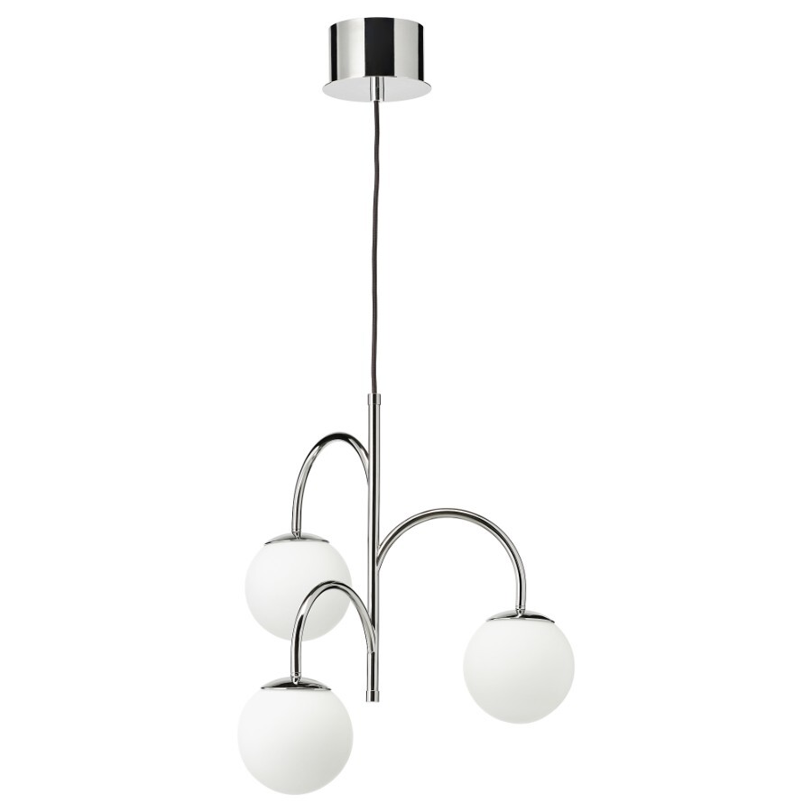Лампы продаются отдельно. Мы рекомендуем три шарообразных опаловых белых светодиодных лампы (E14).