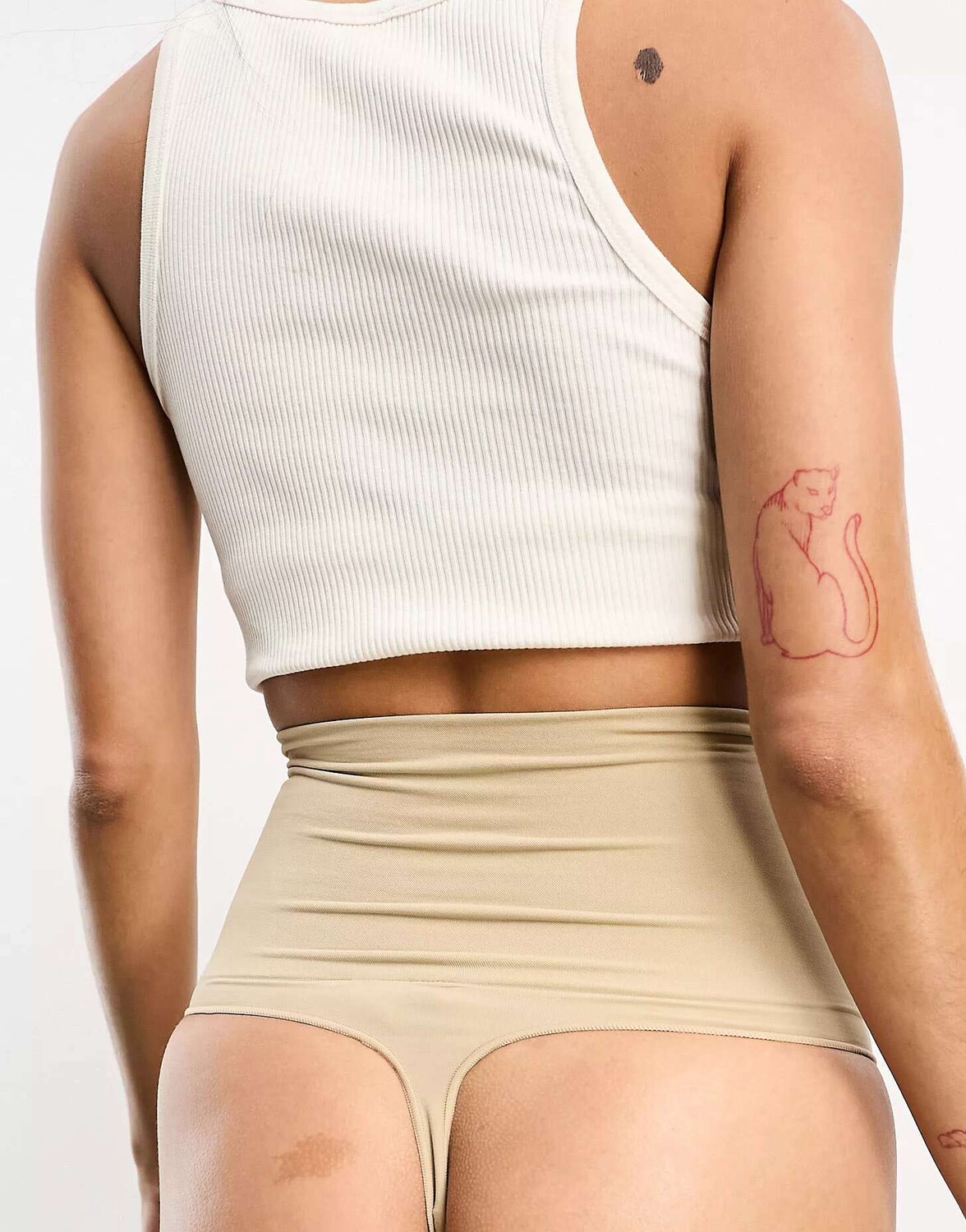 Бежевые бесшовные стринги с высокой талией Vero Moda