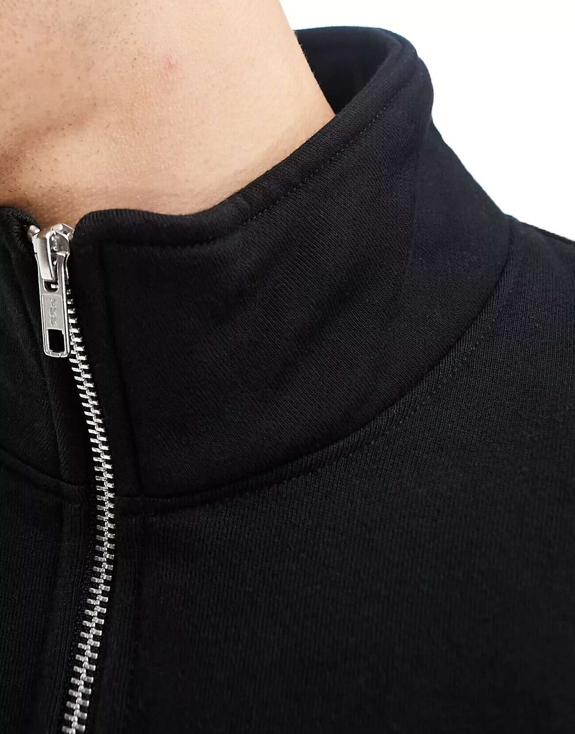 Черный тяжелый свитшот на молнии с половиной молнии ASOS