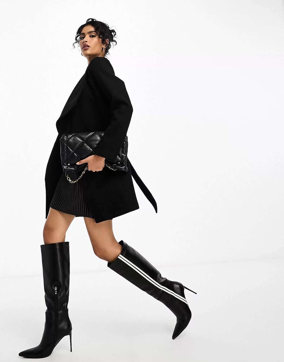 Черное пальто с поясом-водопадом Vila
