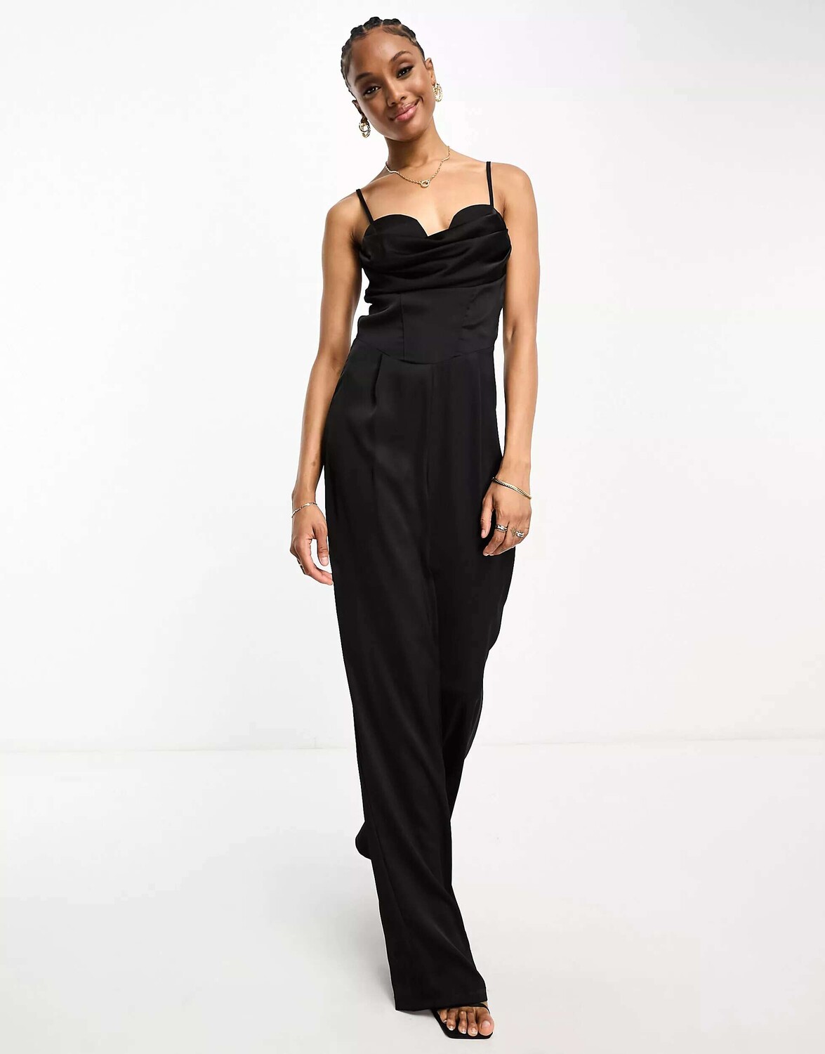 Черный атласный комбинезон с корсетом Jaded Rose 6 757₽