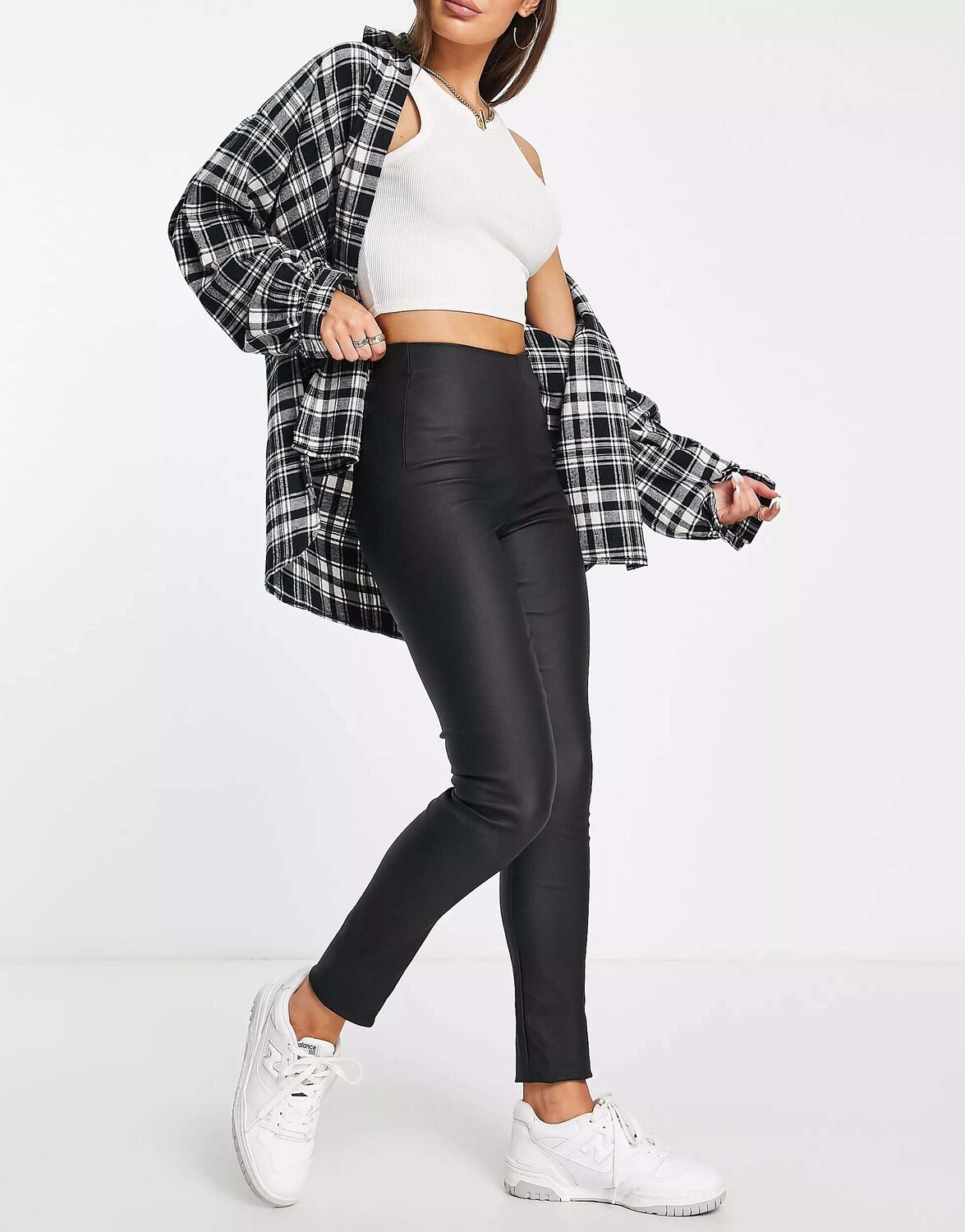 Черные леггинсы с покрытием и молнией сзади Vila