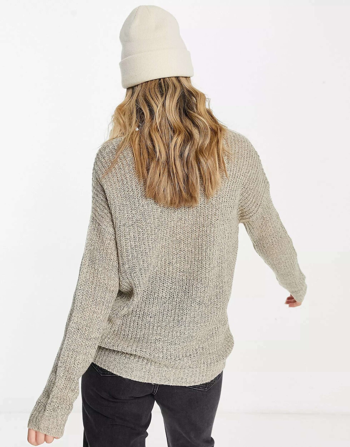 Легкий джемпер с v-образным вырезом JDY бежевого цвета