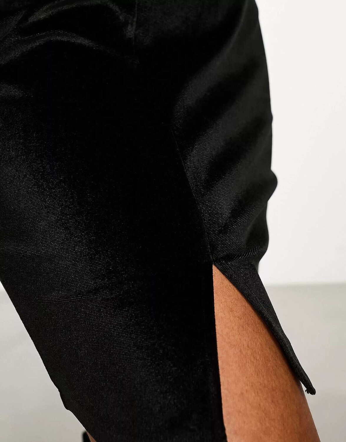 Черная бархатная мини-юбка Monki с разрезом по краю